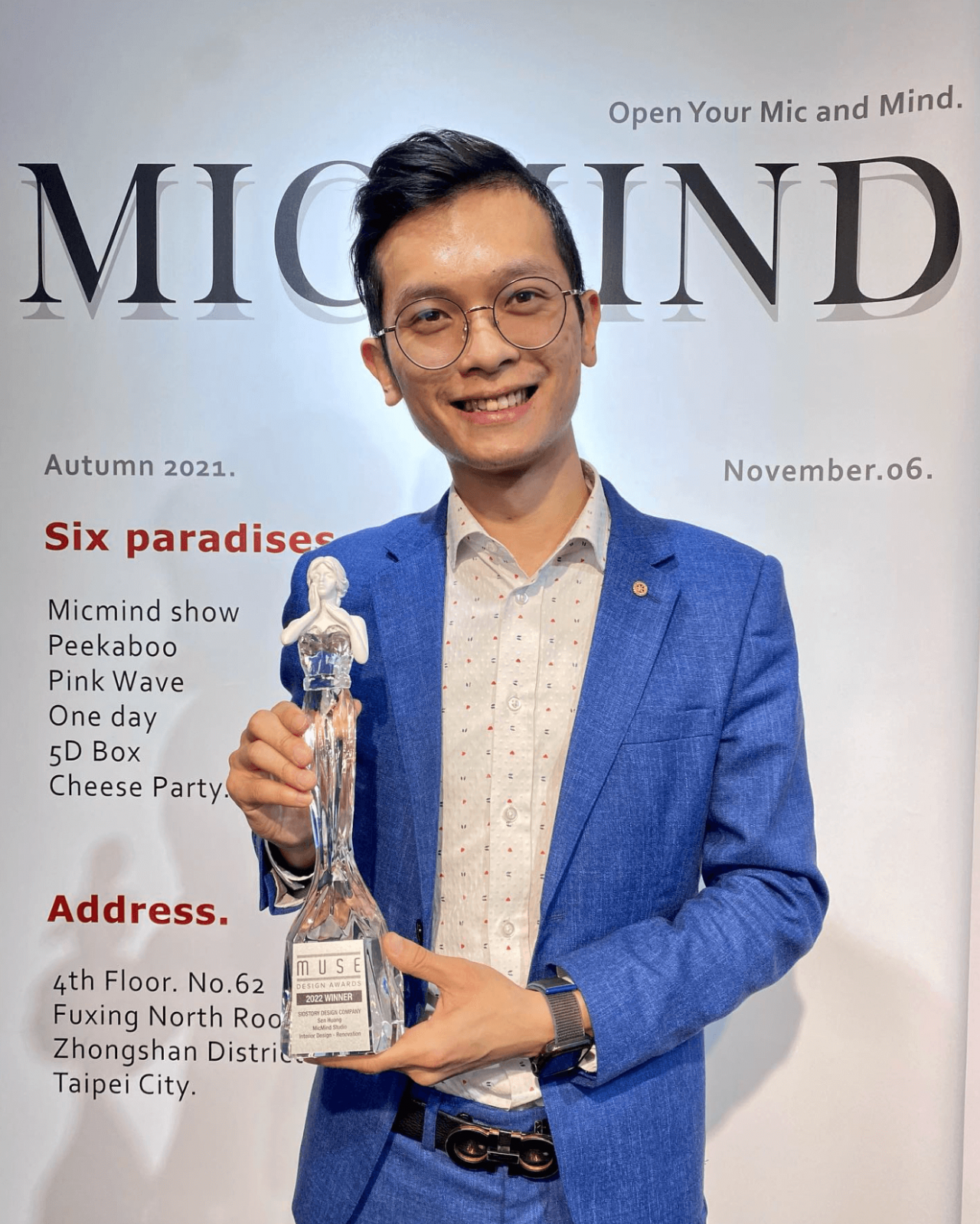 在 2021 年開始踏進 Podcast 及錄音室的領域,攜手與房地產團隊打造出台北最美的錄音室 - MicMind,空間設計榮獲了美國的 MUSE 國際設計獎外,也成為許多知名的企業、KOL和藝人長期合作的創作空間。